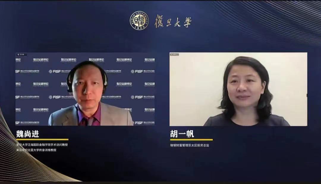 2022年8月25日,瑞银财富管理亚太区投资总监胡一帆走进“复旦金融公开课”,以“全球经济与市场展望及资产配置”为题,与学术访问教授、美国哥伦比亚大学终身讲席教授魏尚进展开深度对话。