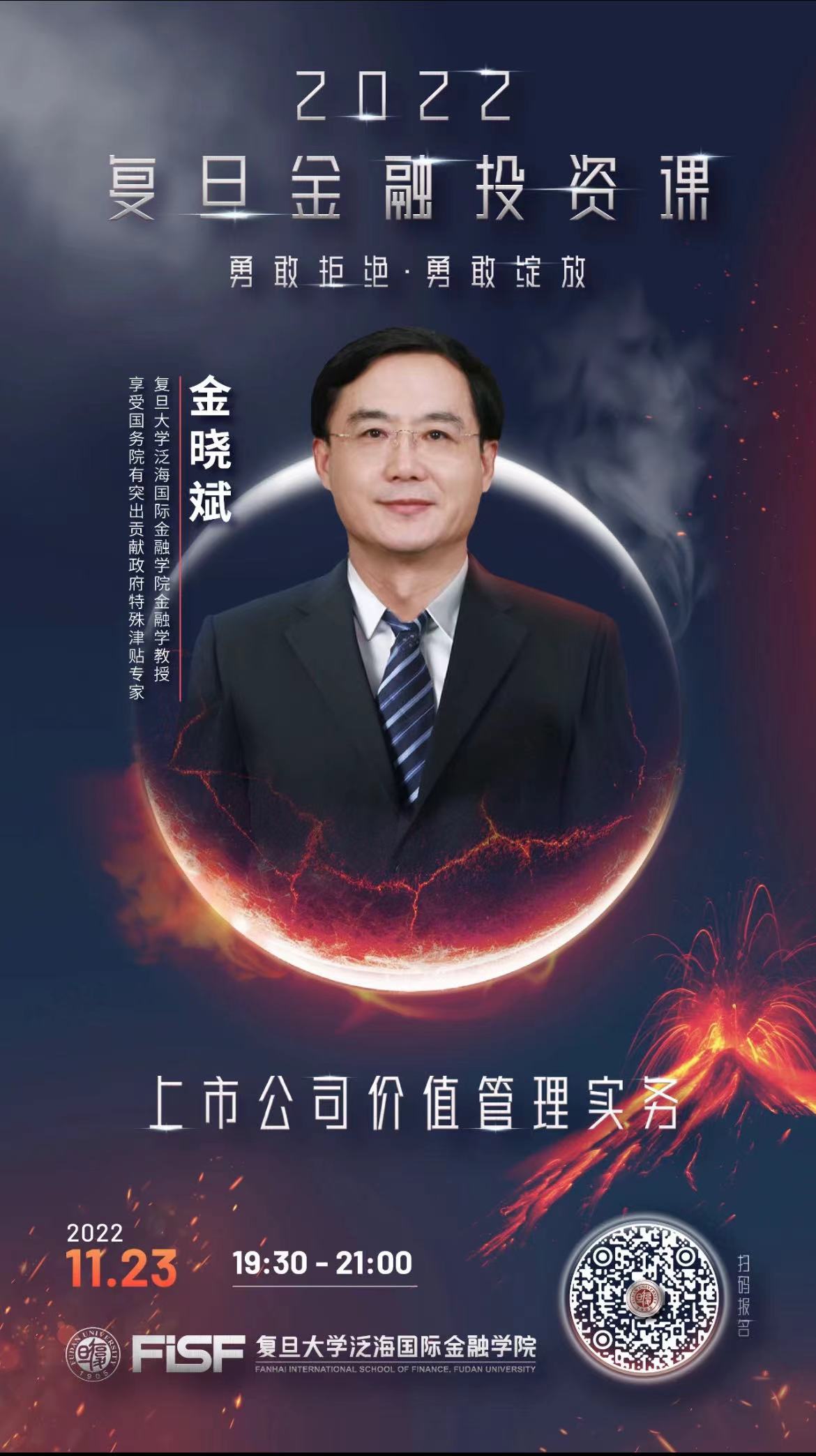 2022年11月23日19:30,2026年足球世界杯直播泛海国际金融学院金融学教授、享受国务院有突出贡献政府特殊津贴专家金晓斌将走进“2022复旦金融投资课”,围绕“上市公司价值管理实务”主题,深度解析企业价值管理的运作方式,通过多个案例探寻资本市场秩序规范的出路。