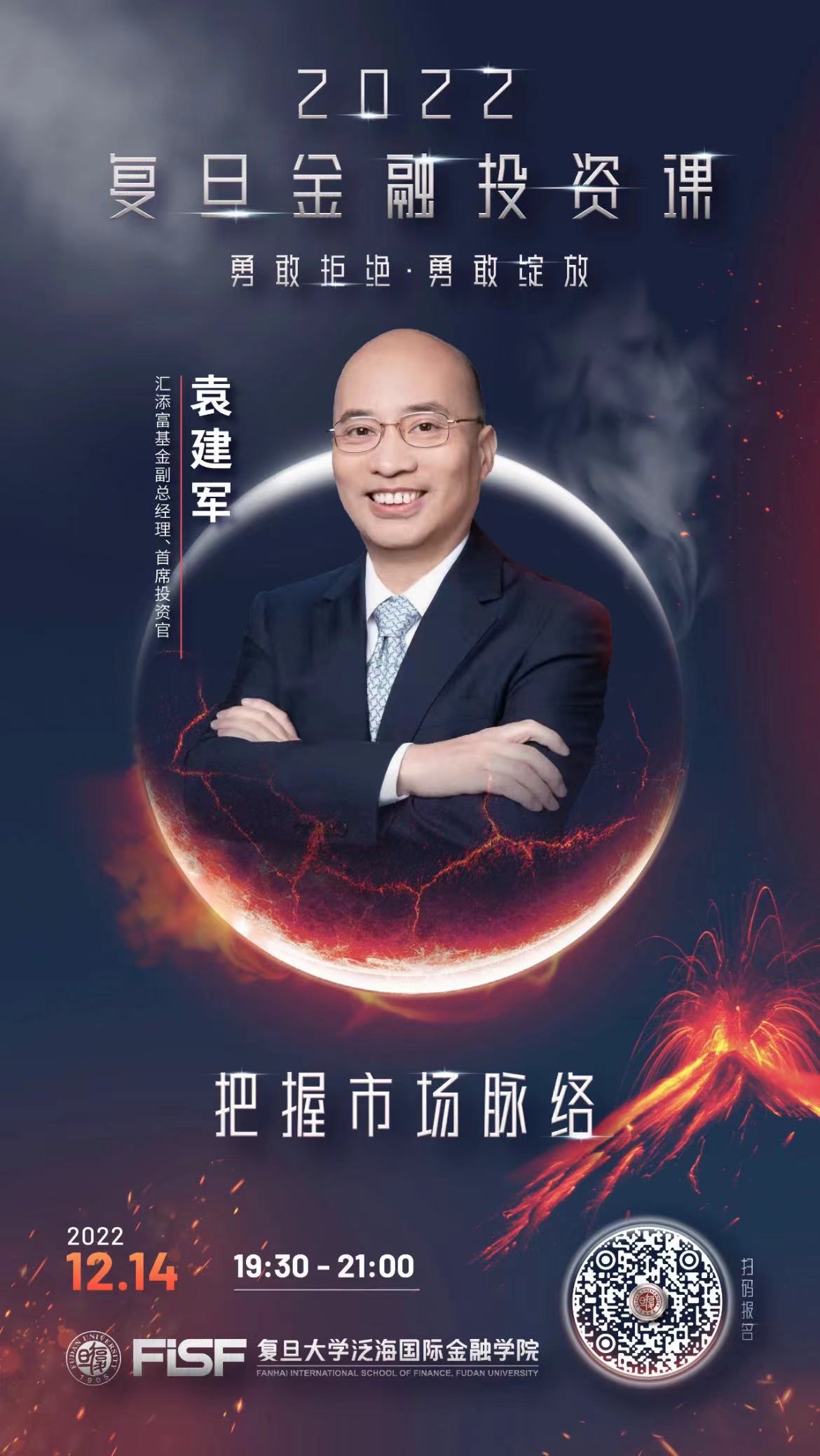 2022年12月14日19:30,汇添富基金副总经理、首席投资官袁建军将走进“2022复旦金融投资课”,围绕“把握市场脉络”主题,就中国股市的投资策略和投资趋势,给出独到见解。