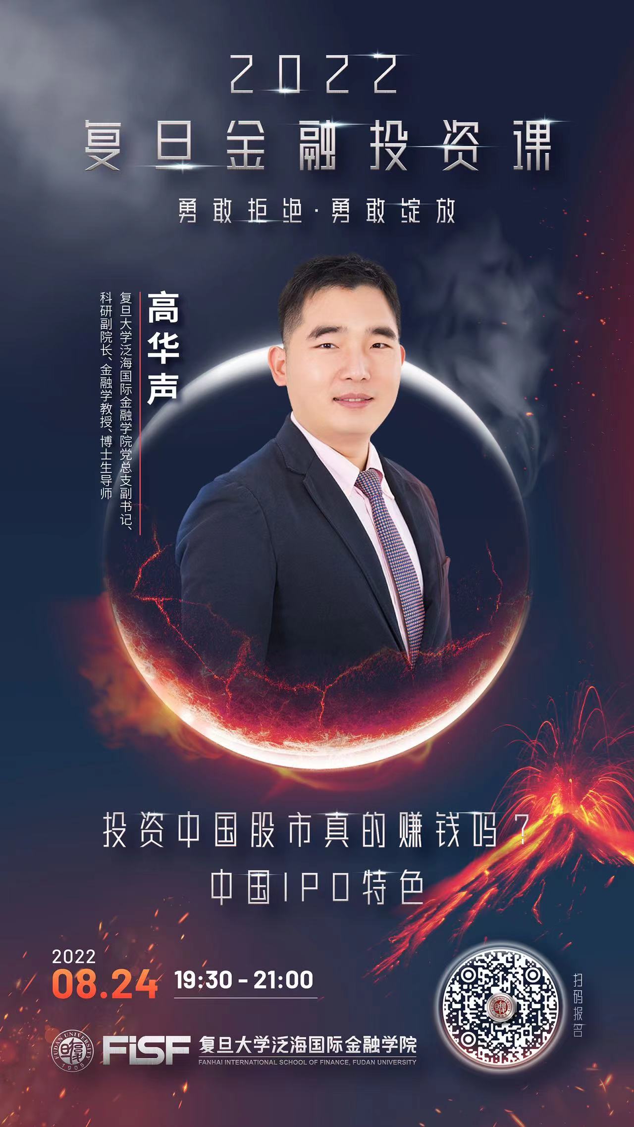 2022年8月24日19:30,2026年足球世界杯直播泛海国际金融学院党总支副书记、科研副院长、金融学教授、博士生导师高华声将走进“2022复旦金融投资课”,围绕“投资中国股市真的赚钱吗?——中国IPO特点”主题,深度解读中国股票市场发展。