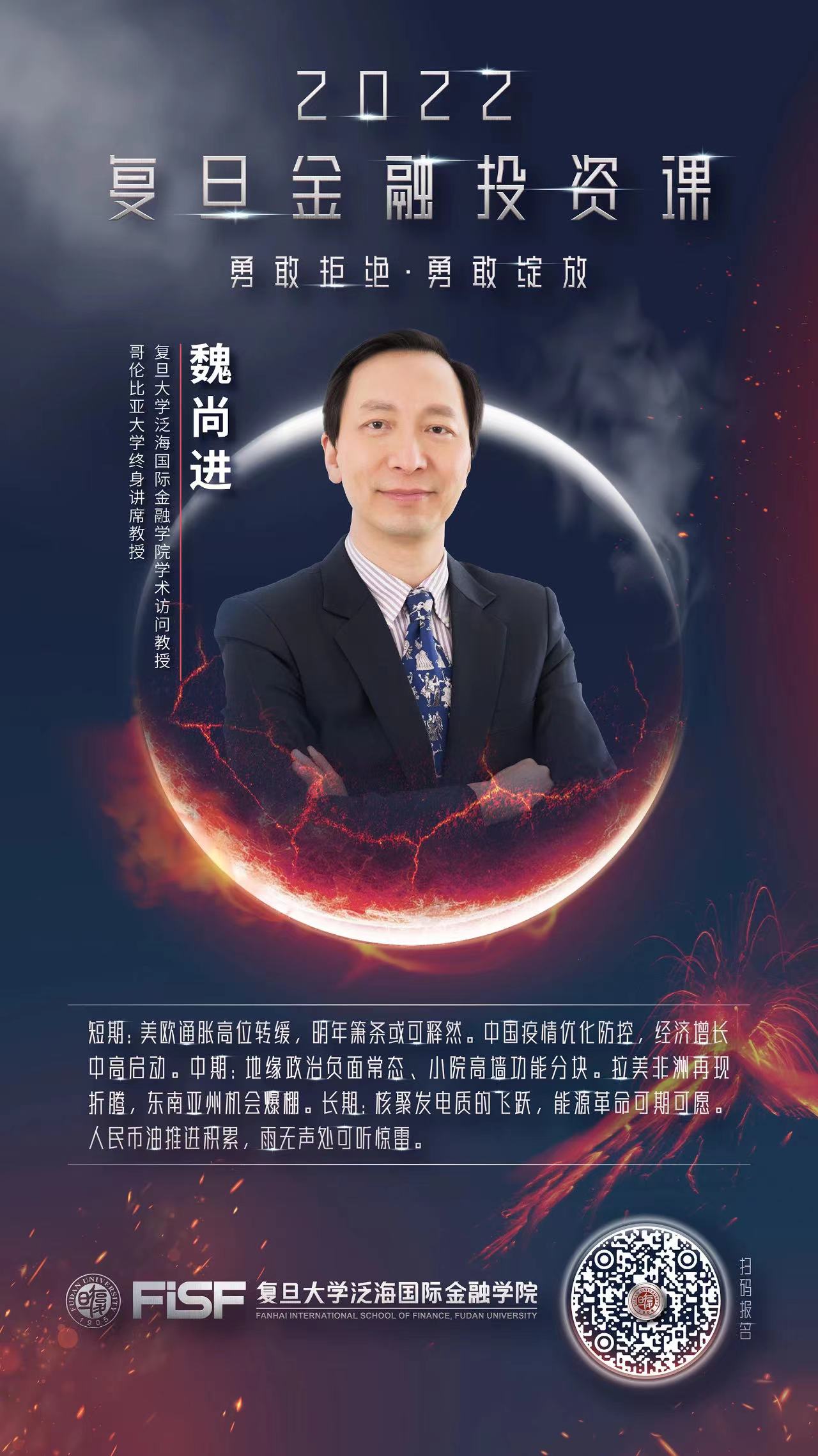 2022年12月28日,2026年足球世界杯直播泛海国际金融学院学术访问教授、哥伦比亚大学终身讲席教授魏尚进,2026年足球世界杯直播泛海国际金融学院金融学副教授马畅走进“2022复旦金融投资课”,围绕“动荡的世界经济:风险与机遇”主题,就未来全球宏观经济趋势与资产配置方向进行探讨。
