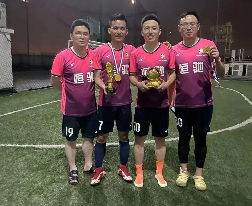 学习工作之余,在绿茵场上驰骋(合照右一)