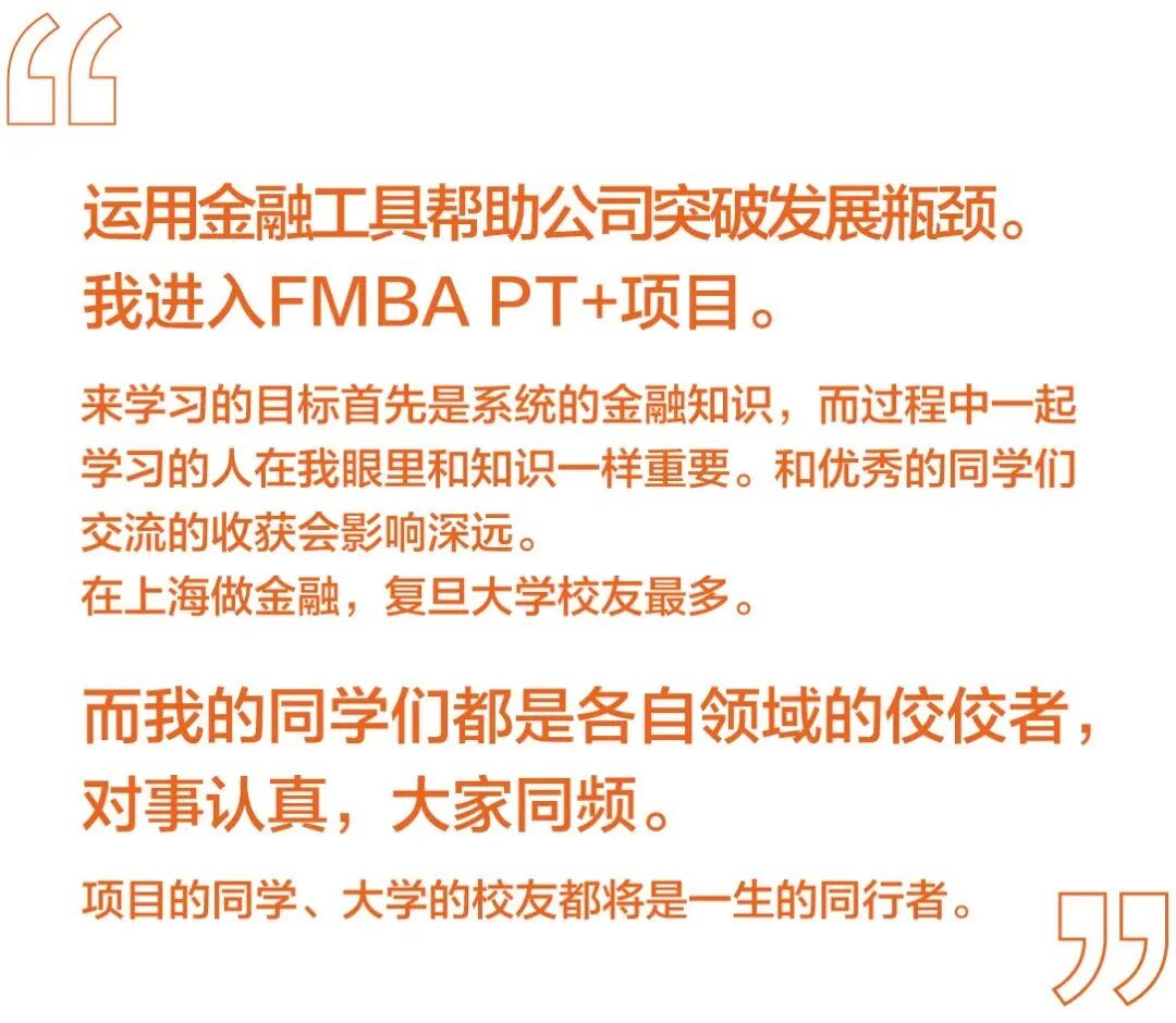 你是否也好奇,复旦在职金融MBAer(FMBA PT+)在工作中、生活中、家庭里是什么样子?