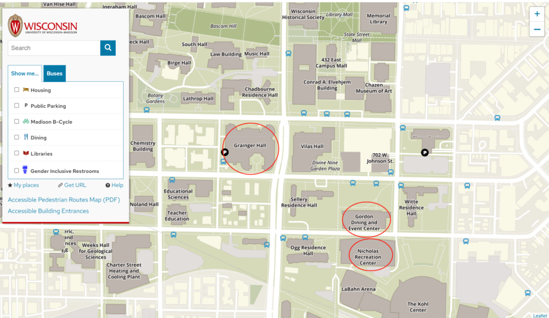 (康小亮同学于威斯康辛大学的生活地图)