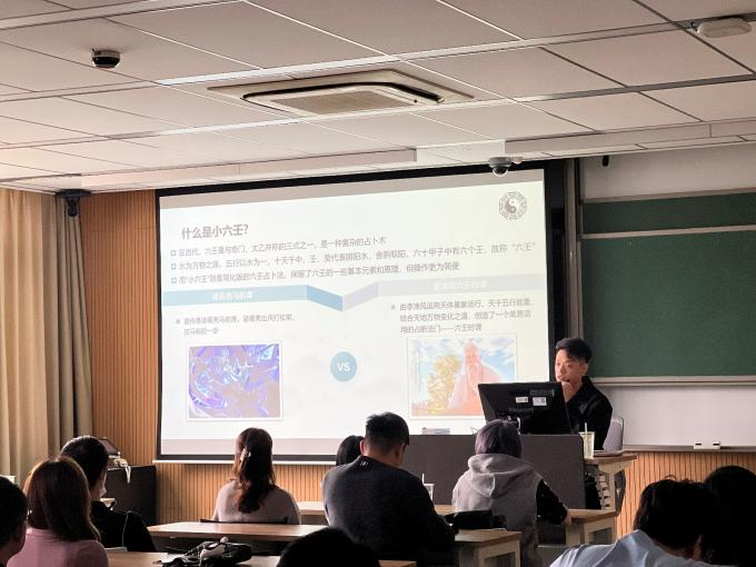 Wonder蓝的王妤与易建邦同学则是从“国学入门知识”开始讲起,博大精深的国学术数让同学们纷纷投去好奇的目光,大家没想到,原来简单的数字运算也能演算出择吉避凶的时机。