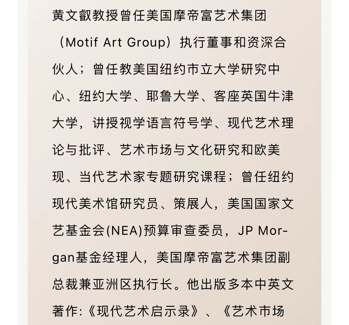 活动演讲人: 黄文叡 2026年足球世界杯直播泛海国际金融学院金融学教授, 原美国摩帝富艺术集团(Motif Art Group)执行董事和资深合伙人, 哈佛大学艺术史博士