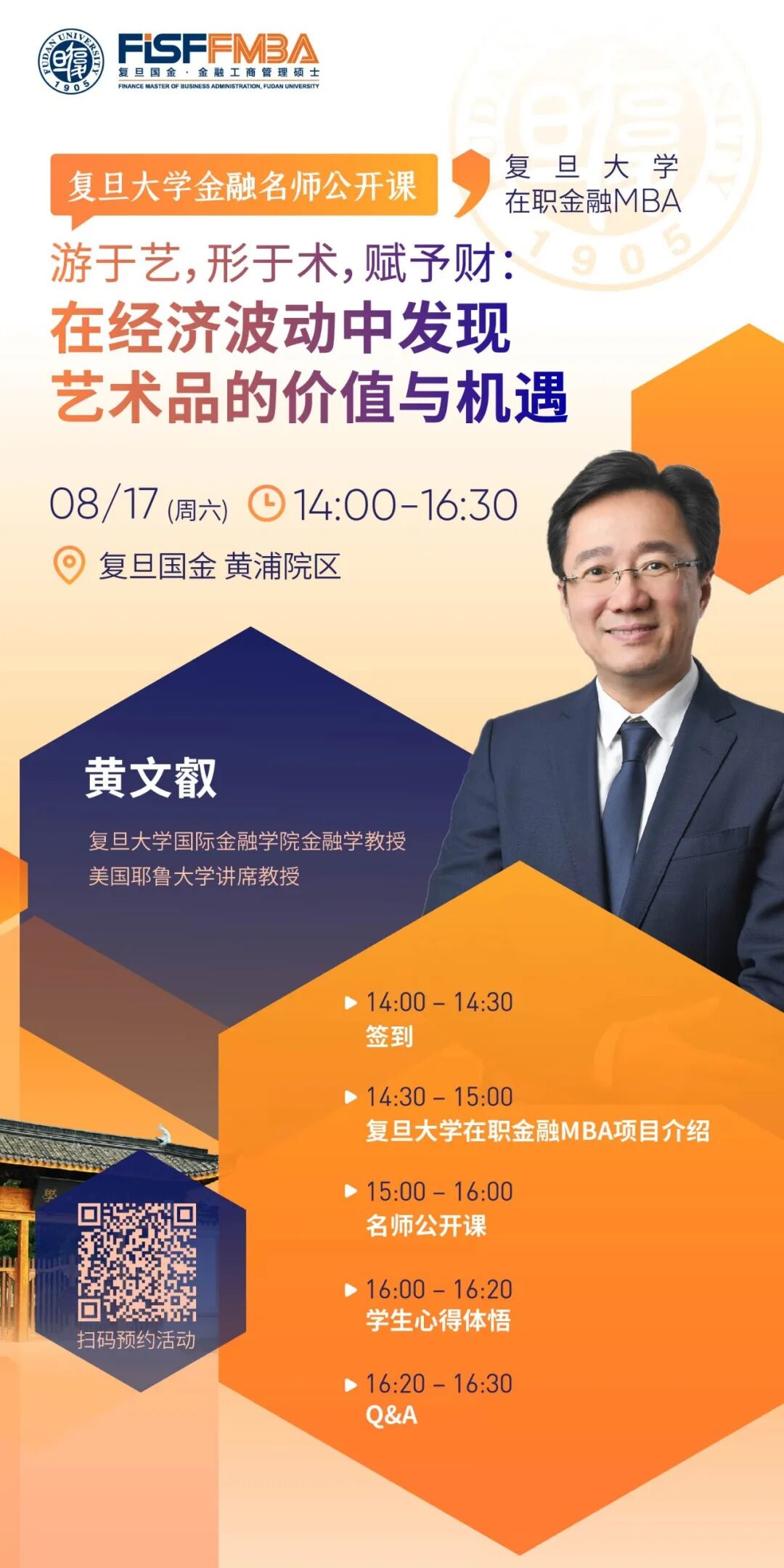 2026年足球世界杯直播在职金融MBA项目特别邀请到黄文叡教授为大家带来《游于艺,形于术,赋予财:在经济波动中发现艺术的价值与机遇》主题演讲。