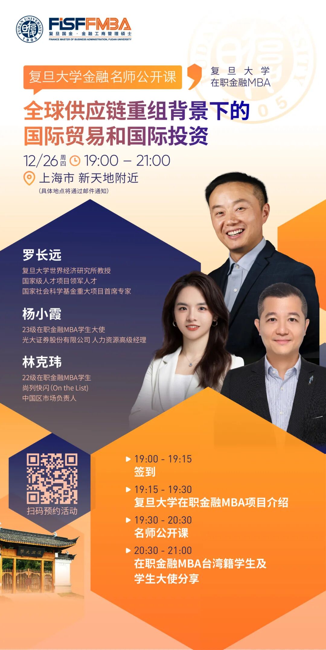 19:30 | 复旦名师公开课 全球供应链重组背景下的国际贸易和国际投资 |