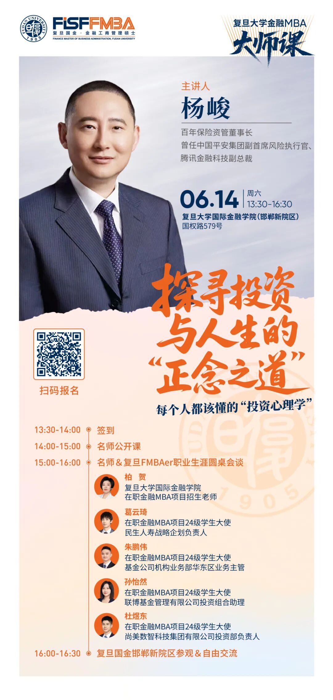 14:00 | 名师公开课——杨峻 《探寻投资与人生的“正念之道”》 |