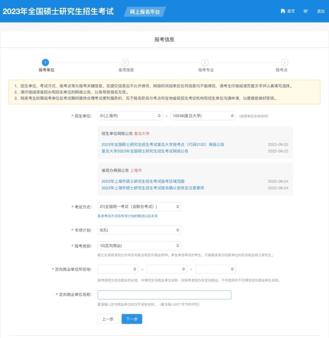 选择“定向就业”的考生请输入最近一份工作所在单位信息,报考期间就业单位发生变化不会影响考生报考。