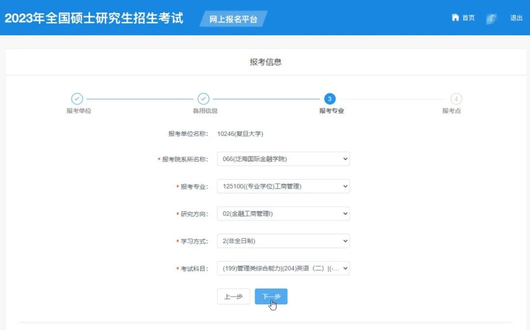 ▲注:以上图示为在职制金融MBA(FMBA PT+)考生所填界面,仅供参考。