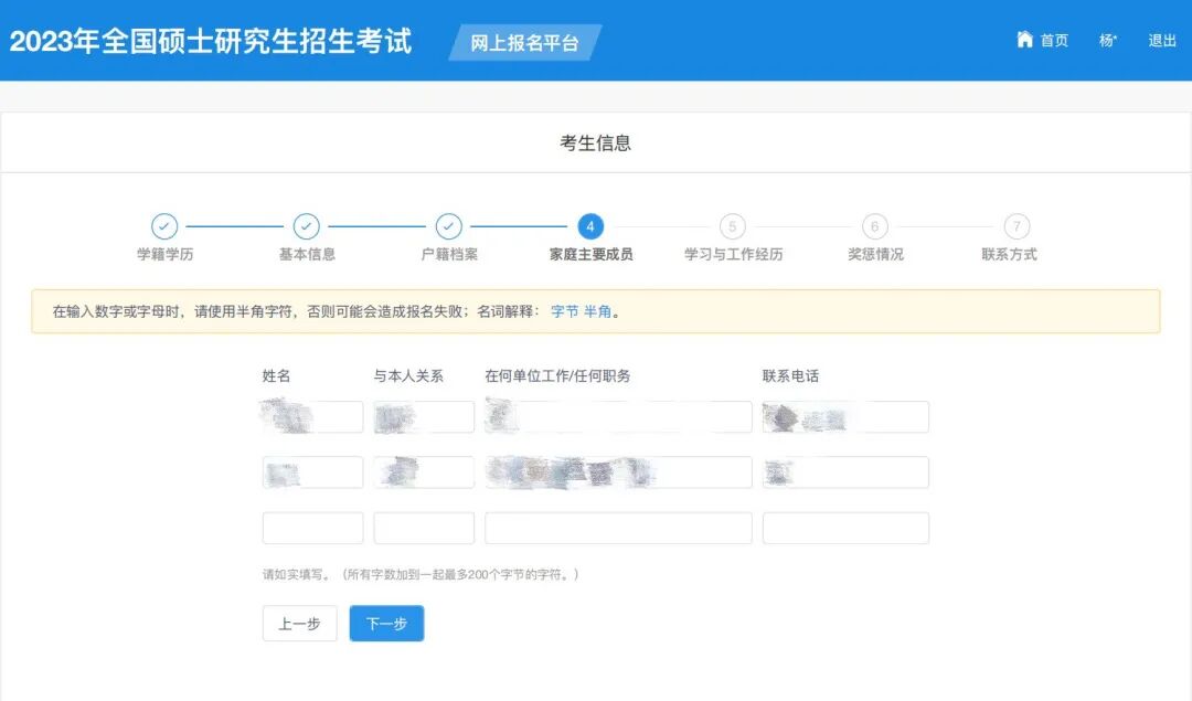 按步骤如实填写“基本信息”、“户籍档案”、“家庭主要成员”、“学习与工作经历”、“奖惩情况”和“联系方式”。