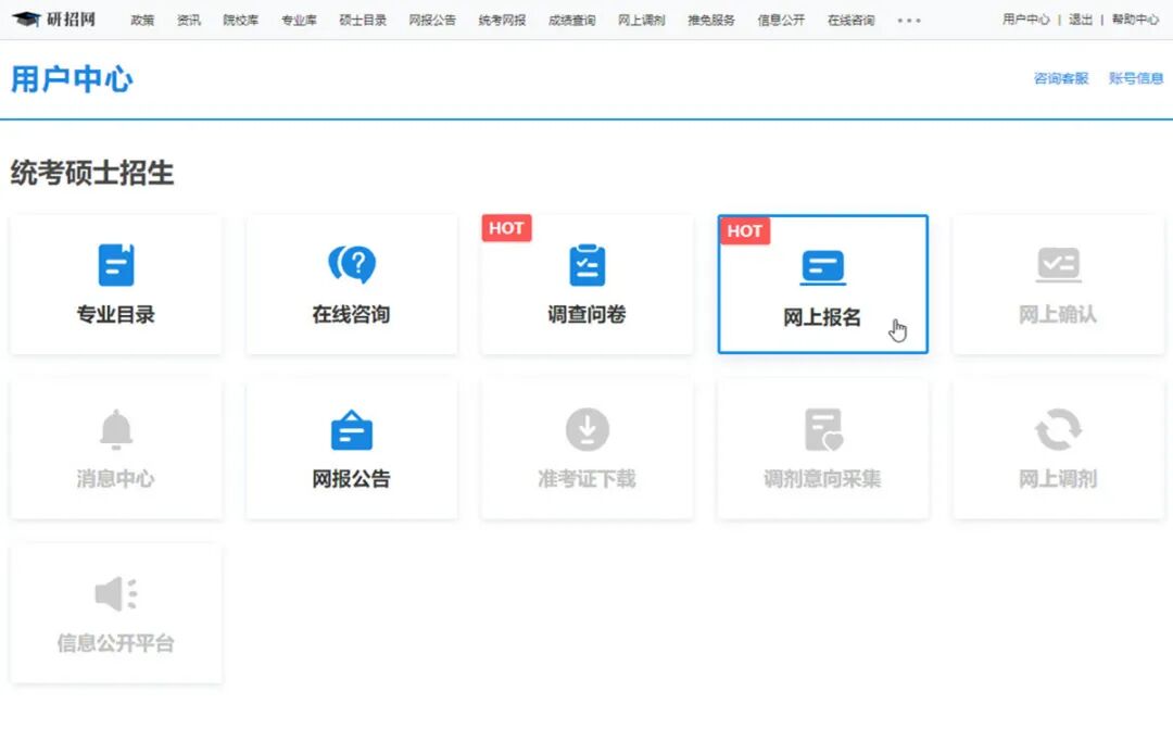 打开中国研究生招生信息网https://yz.chsi.com.cn 首页,注册学信网账号,登录网报系统。