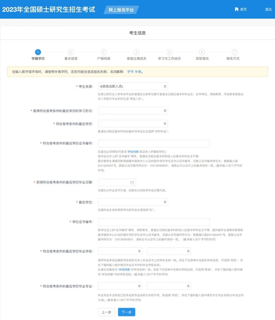 最后学历毕业学校:如实填写,没有的(如学校更名)选择“其他”,在下面输入框填写学校名称(以毕业证书为准);