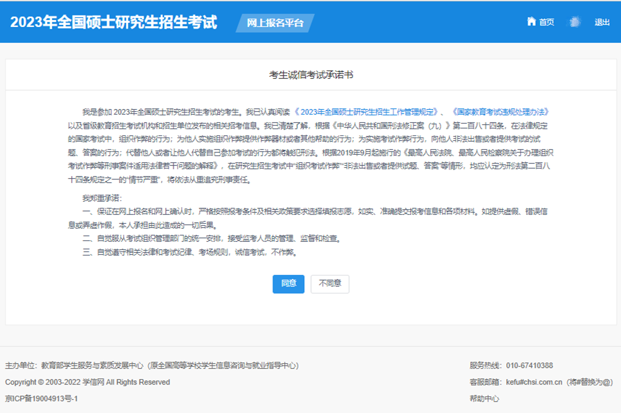阅读《考试诚信考试承诺书》,点击“同意”。