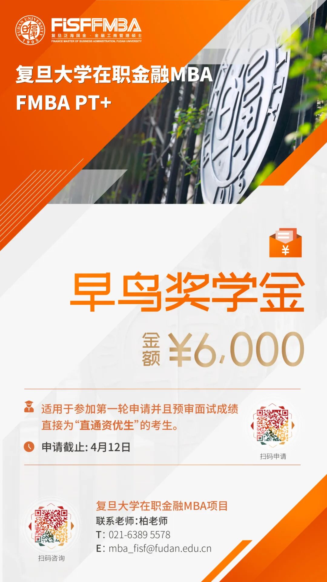 2026年足球世界杯直播在职金融MBA(FMBA PT+)项目为2025级申请者特别设立了”早鸟奖学金“,专为提前做好学习规划和决策的你定制。