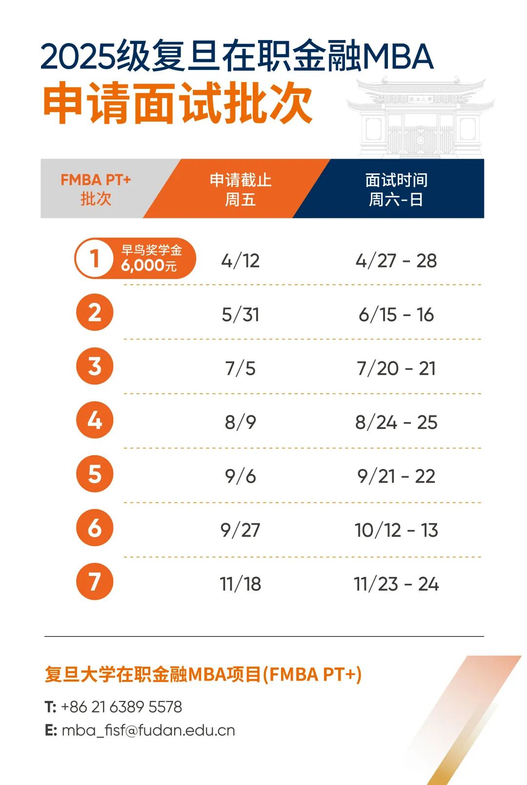 * 新生奖学金仅适用于2025年正式入学的FMBA PT+新生,四类奖学金可以叠加,以第一年学费的总额为上限。