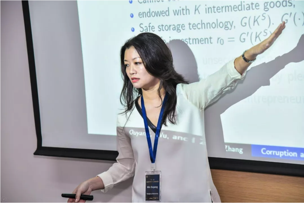 紧接着,清华大学管理学院欧阳敏教授的演讲主题是《投名状》。她指出我们探讨腐败在金融援助中的作用,当传统的抵押贷款在中国这样的经济体受到限制时,我们构建了代理摩擦理论,腐败帮助银行克服软预算约束,引导企业家投资高质量项目并偿还债务。当反腐运动对腐败支持的金融造成附带损害时,银行对收益的追求导致了基于实物资产或股票质押的另类贷款,因此,实物资产的价格和股权质押的金额都会上升。研究了来自中国的地区层面和公司层面的数据,欧阳教授也找到了支持的理论证据。我们认为,如果不对金融市场体制进行进一步的改革,仅靠反腐败运动就可能阻碍金融中介,产生不良后果。