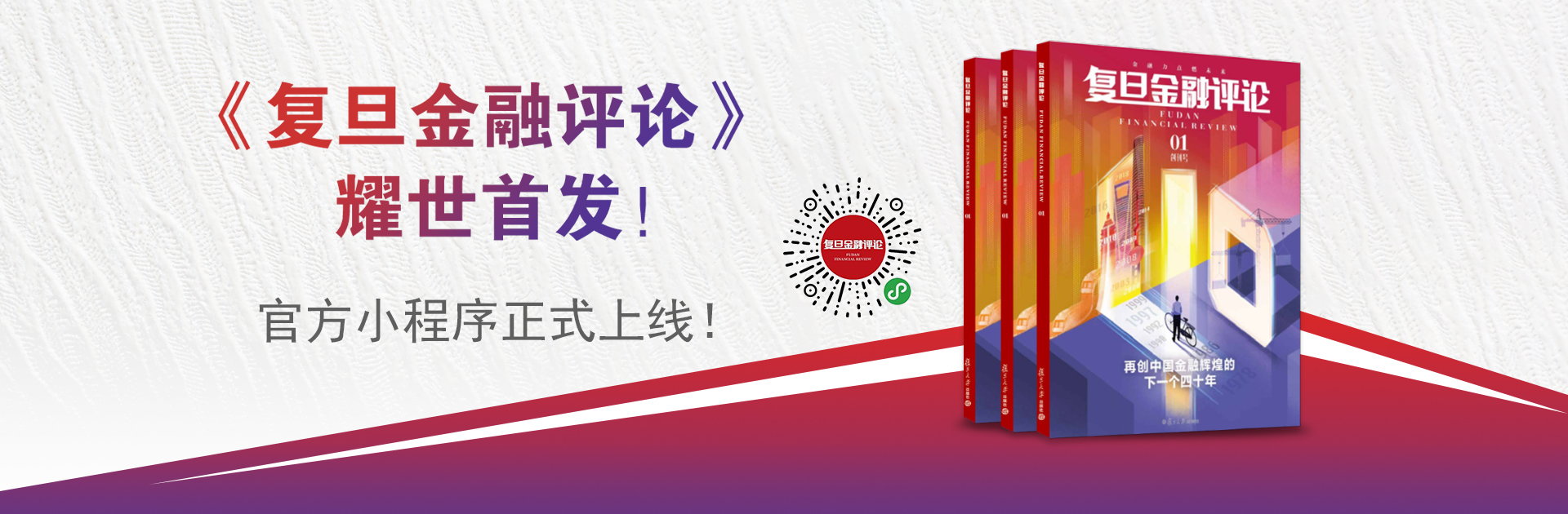与此同时,《复旦金融评论》官方小程序现已正式上线,作为刊物线上传播的载体,小程序将成为链接刊物、作者、读者的枢纽平台。