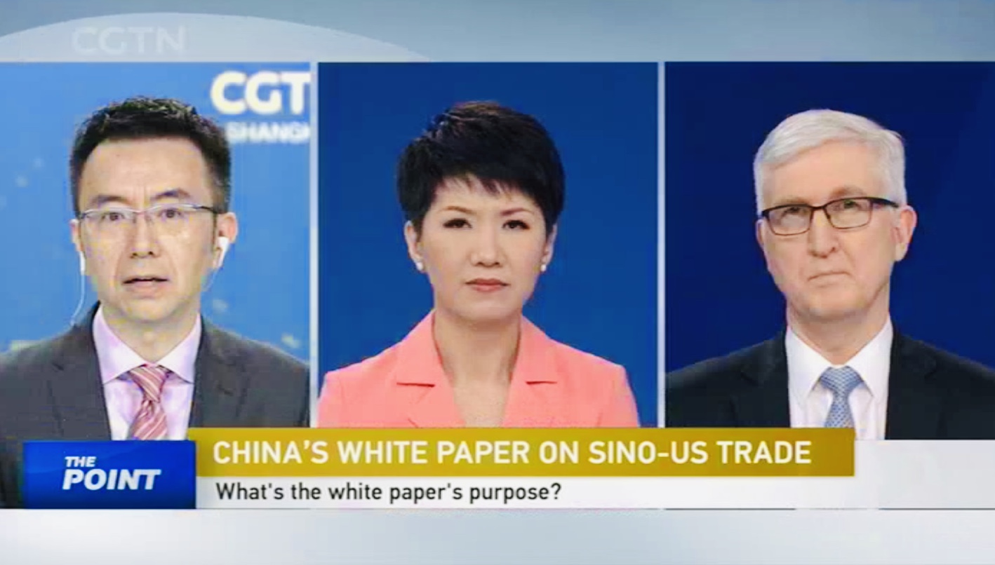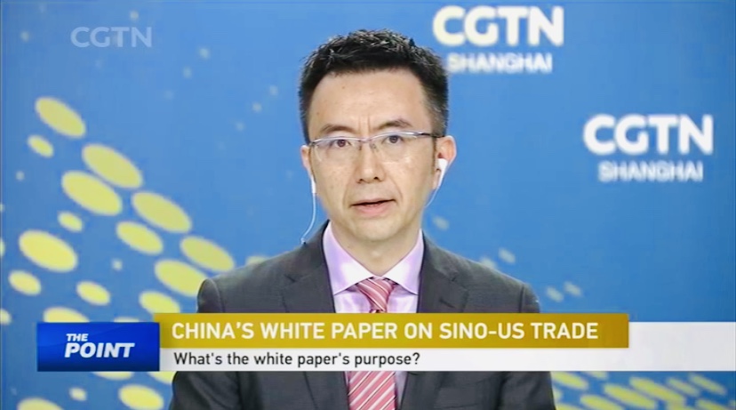 CGTN“跨洋辩论”女主播刘欣直播连线学院钱军教授,深度解读“中美经贸磋商”白皮书
