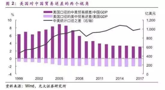 所以,从相对于经济规模来看,全球贸易不平衡的问题从金融危机以后已经有所纠正。但是,为何现在美国政府认为贸易不平衡成为一个新的问题呢?首先,比较一下中美双边的贸易逆差和顺差,中美贸易顺差或者说美国对中国的贸易逆差相对于中国的GDP有明显的下降,表明不平衡问题得到了明显的纠正,但相对于美国的GDP基本没有什么变化。当前中美统计的贸易口径存在一定差异,即使按照美国的统计口径来看,对于中国来说,双边贸易不平衡问题降低了,过去我们担心中国贸易顺差太多反映了国内经济结构的不平衡,这不是美国人给我们压力,而是我们自己要纠正。