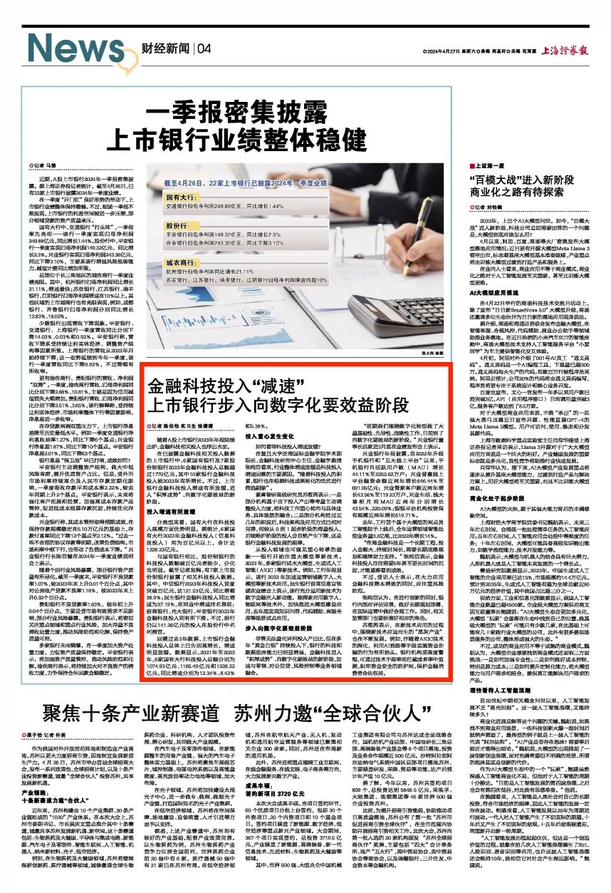 信息来源:张纯信教授接受上海证券报采访,主题聚焦“金融科技投入‘减速’,上市银行步入向数字化要效益阶段”