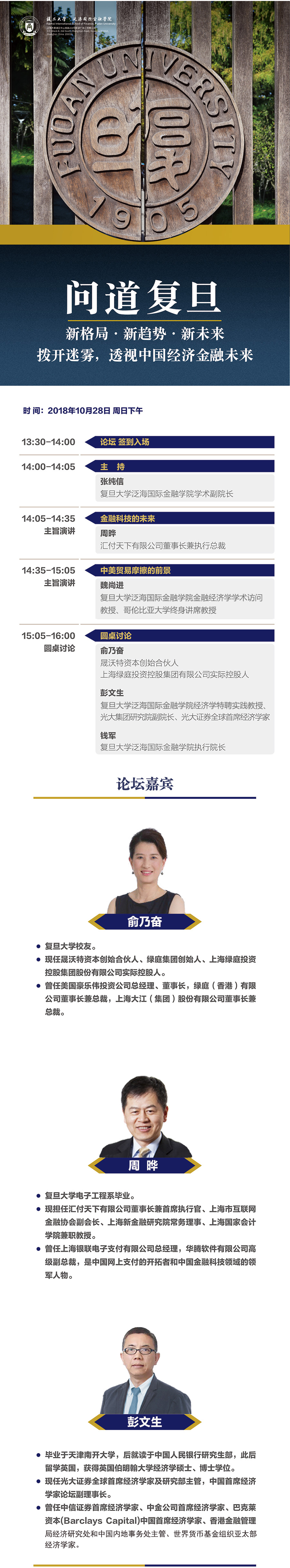 活动演讲人: 俞乃奋,周晔、彭文生