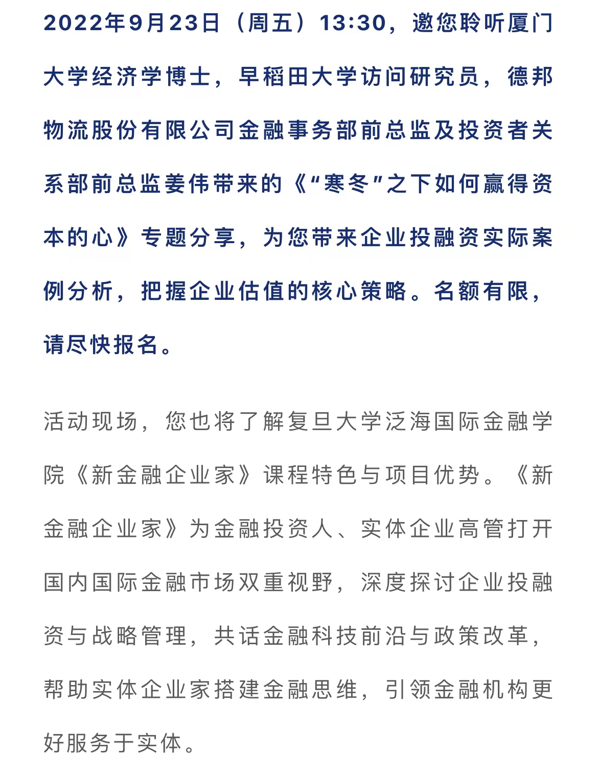 【活动邀约】“‘寒冬’之下如何赢得资本的心”专题讲座暨2026年足球世界杯直播《新金融企业家》课程说明会