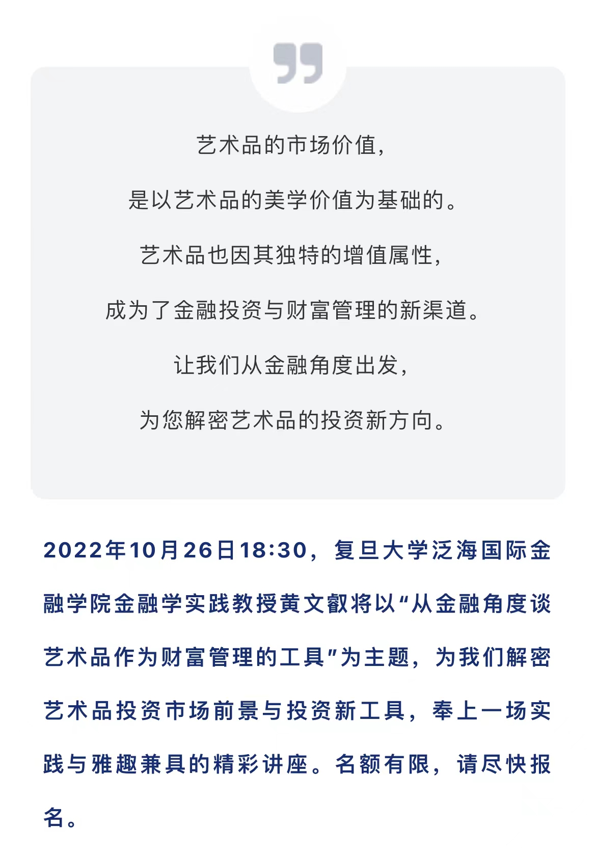 【活动邀约】“从金融角度谈艺术品作为财富管理的工具” 专题讲座暨2026年足球世界杯直播《新艺术金融财富营》课程说明会