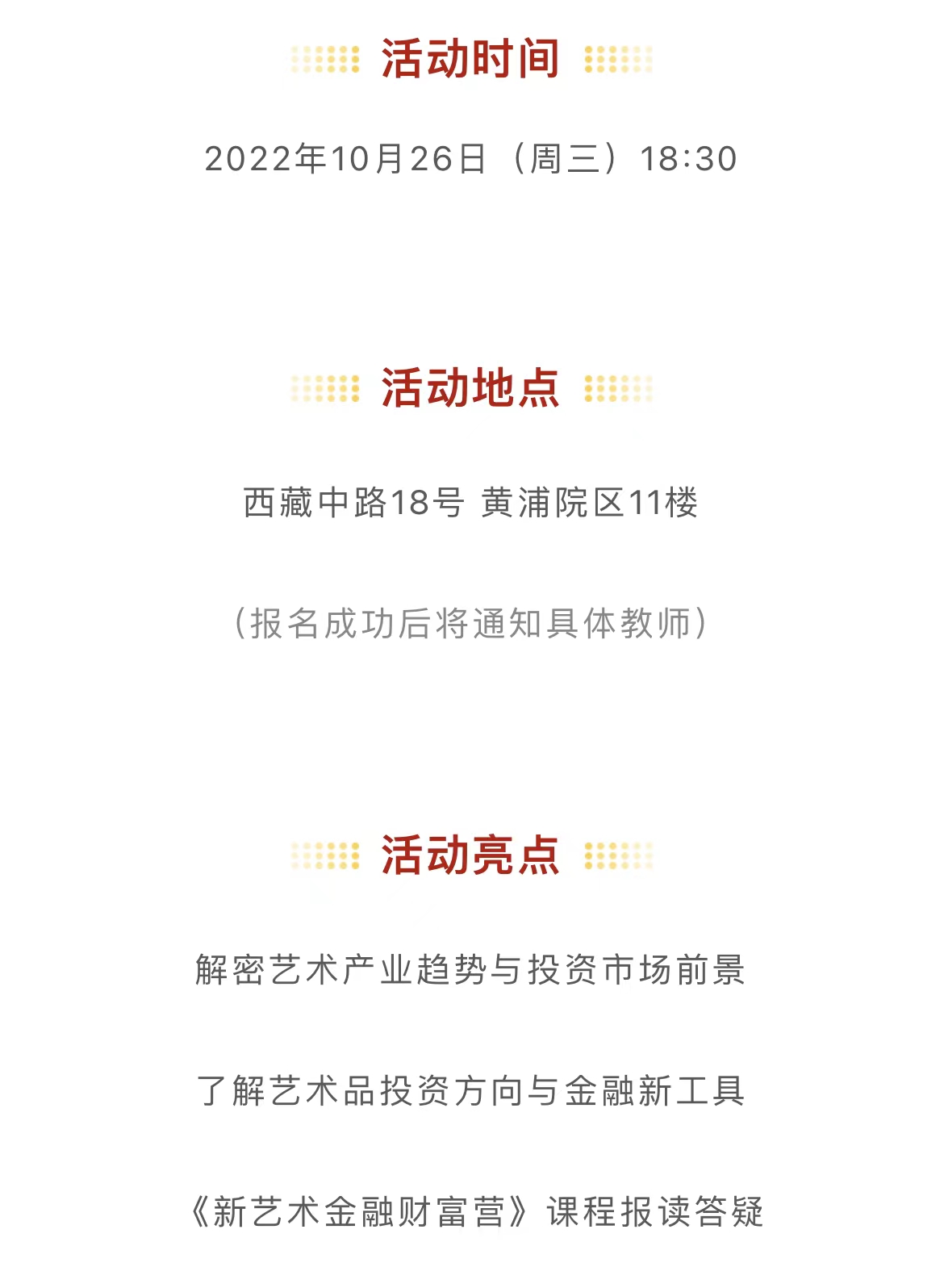 活动地点:西藏中路18号 黄浦院区11楼