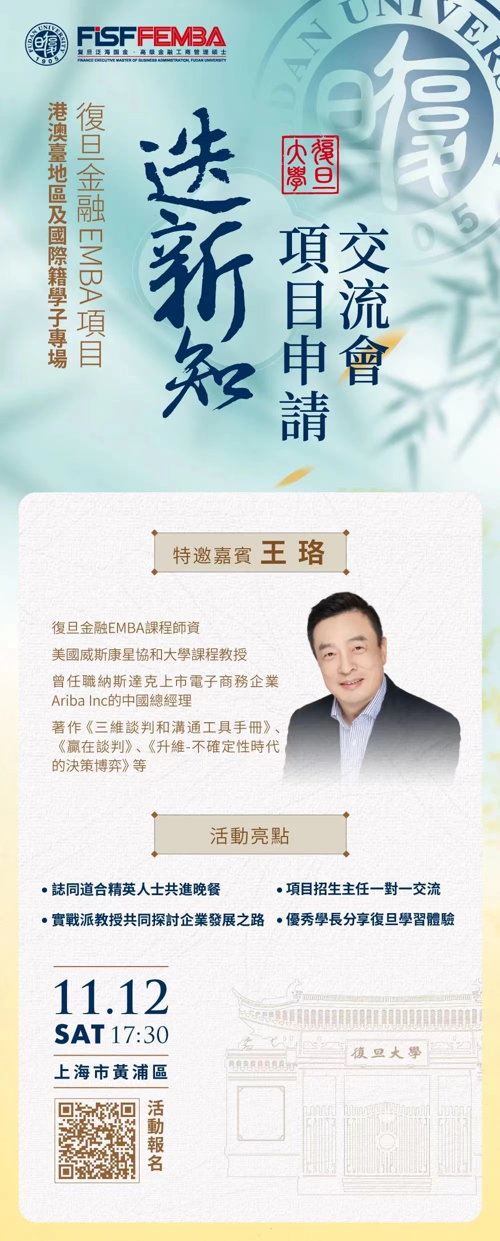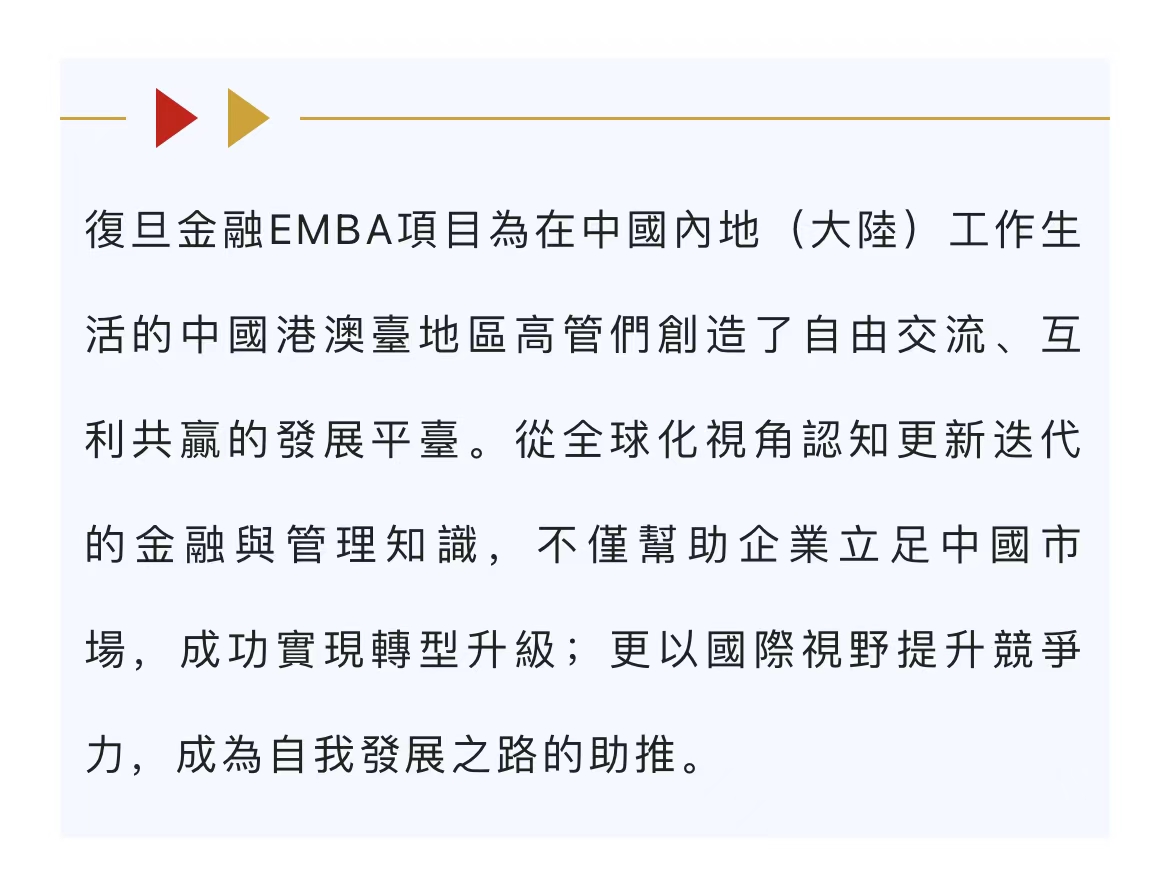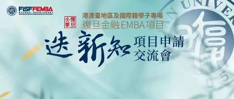【港澳臺地區及國際籍學子專場】復旦金融EMBA“迭新知”項目申請交流會
