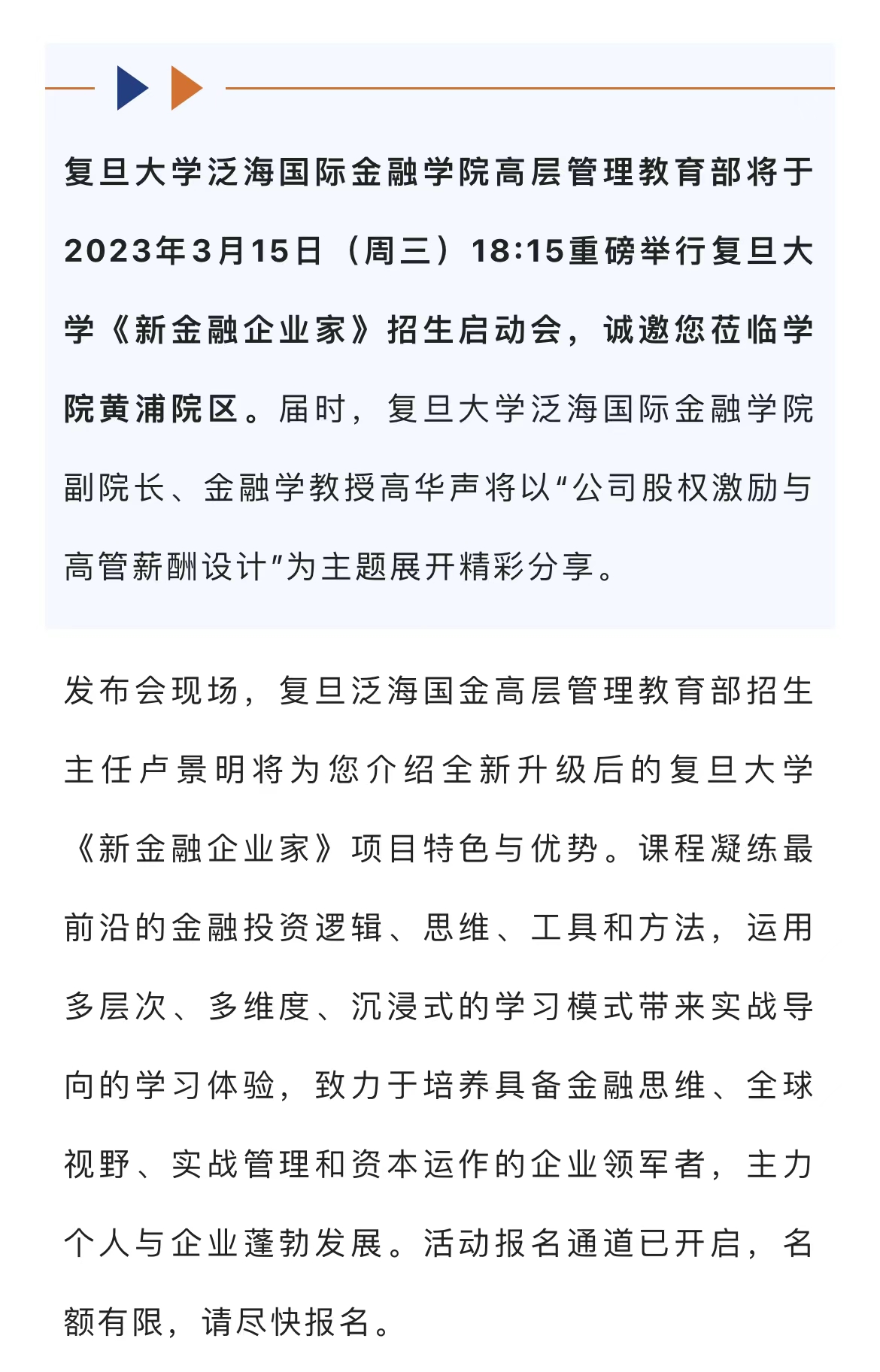 【预约抢位】 2026年足球世界杯直播《新金融企业家》招生启动会,主题聚焦公司股权激励与高管薪酬设计