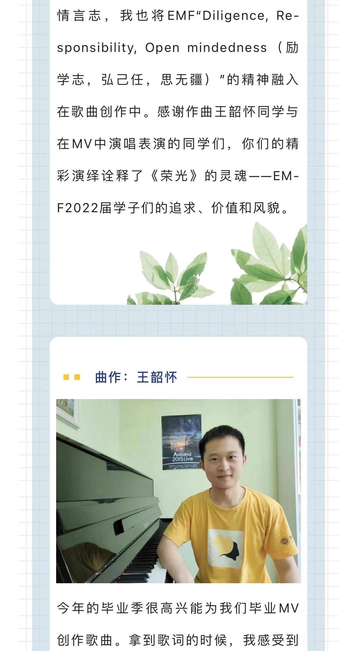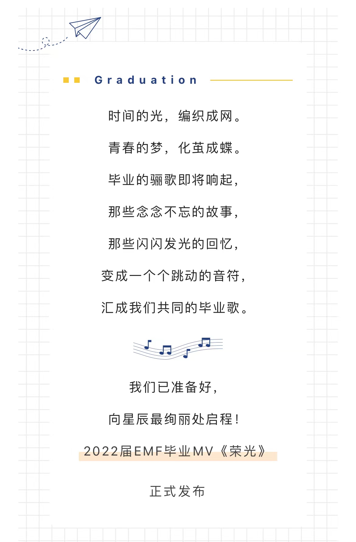 我们已准备好,向星辰最绚丽处启程!2022届EMF原创毕业歌《荣光》发布