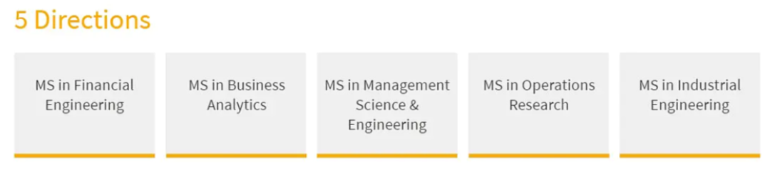 在哥伦比亚大学阶段衔接专业全面拓展为五个方向:金融工程(MSFE),商业分析(MSBA)、管理科学与工程(MS&E)、运筹学(MSOR)、工业工程(MSIE)。其中商业分析(MSBA)项目和管理科学与工程(MS&E)项目课程均由哥大工程学院与哥大商学院(Columbia Business School)合作授课,结合两大学院的学科优势,进一步为学生提供顶尖的综合性教育资源。