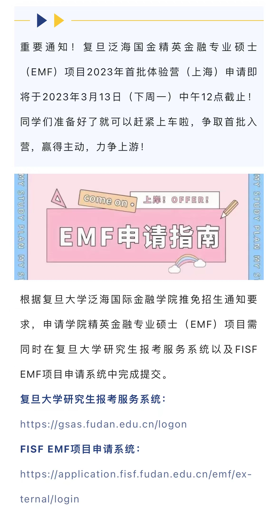 【Q & A】2023年度推免招生已开启,这份EMF申请指南详解为你保驾护航!