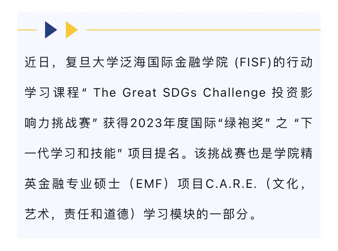 “The Great SDGs Challenge 投资影响力挑战赛”入围2023年度国际“绿袍奖”决赛