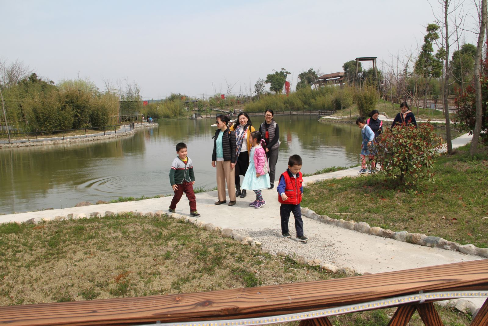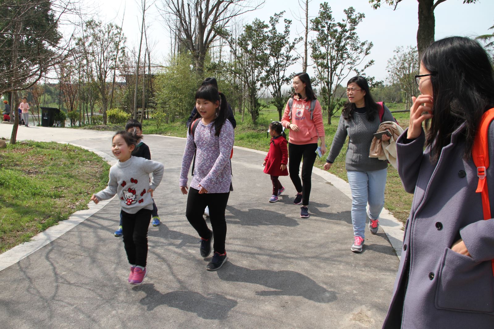 很多教师眺望着成片的菜花,黄色的菜花与绿色的叶子和女同胞及孩子们的衣服色彩斑斓,感叹这简直就是一幅自然画。大家在菜花地里拍照留念;孩子们看着与他们差不多高的菜花,在菜花地里穿梭玩捉迷藏,只听其声,不见其人,玩儿得不亦乐乎流连忘返……他们还去观察小羊、孔雀、公鸡、鸭子,旁边小公园也成为孩子们嬉戏的乐园,他们互相追逐,甚至连地上石头和路边的垂柳都感觉那么亲近;女同胞带着孩子去采摘草莓,孩子们看见红红的草莓,爱不释手,舍不得采摘;有些老师也是第一次到田间去拔青菜、萝卜,割韭菜、芹菜,掐草头,与孩子们一样感到新奇,感受到农民劳动的辛苦,每位老师不仅亲近大自然,而且收获满满。车上、路上女教师们交流各自的科研、育儿的经验…