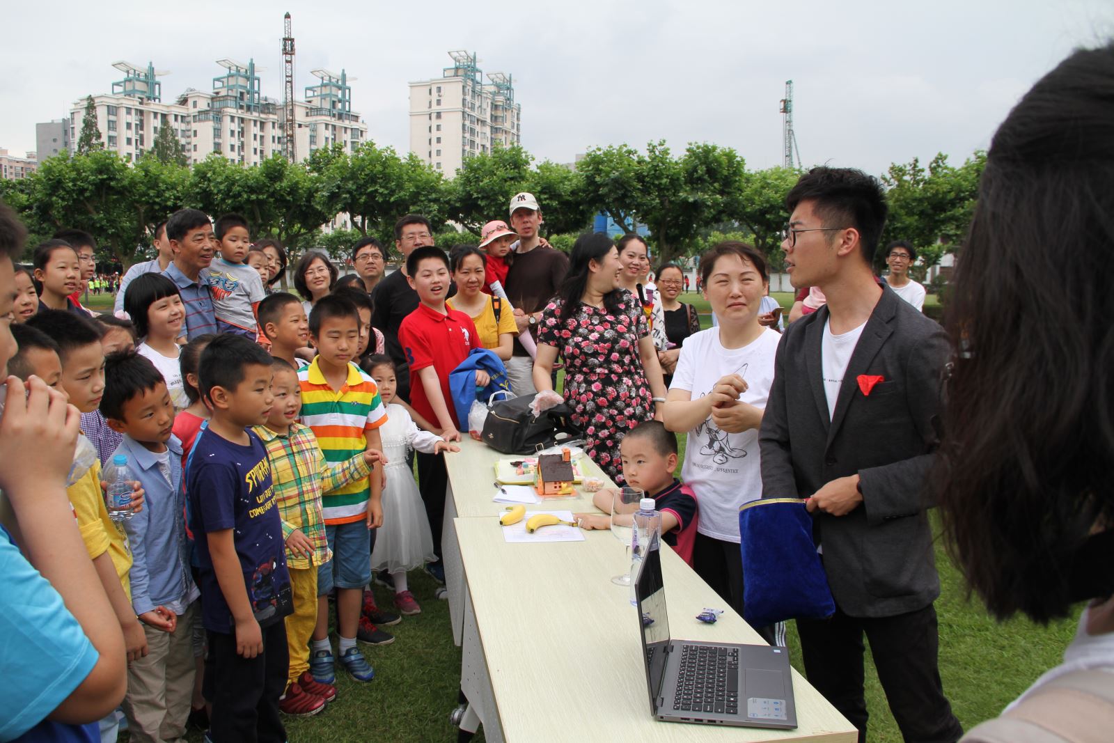 这次活动与往年有所不同,不仅活动增加了“全家福”拍照和互动环节,而且还有两个国外的“复二代”小朋友参加。今年学院邀请了学校魔术团的几位成员与孩子们互动。当魔术团的成员在变魔术时,孩子们目不转睛地查看每个细节并动脑筋猜测东西到底是从哪里变出来的?空空的袋子里怎么会有那么多的礼物?魔术活动结束有些孩子还在相互探讨其中的奥秘。