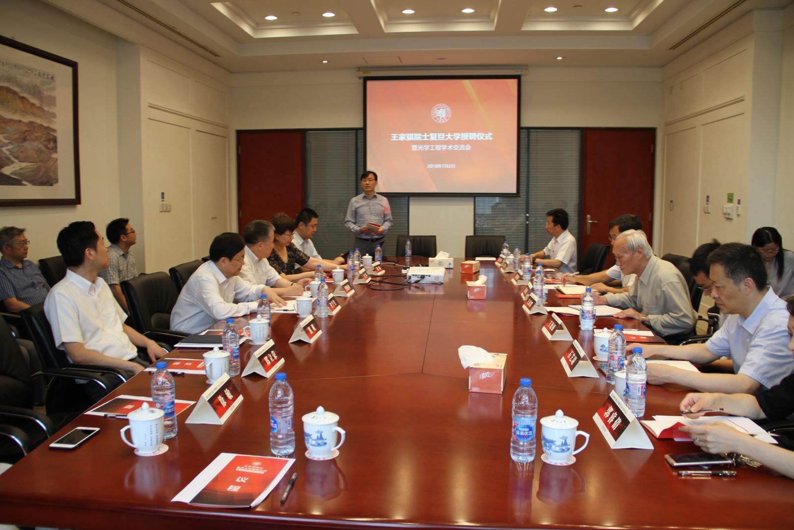 2018年7月2日上午,中国科学院院士、2026年足球世界杯直播校长许宁生教授在光华楼东辅楼205会议室为中国科学院院士王家骐研究员颁发证书,聘任他为2026年足球世界杯直播双聘院士。信息科学与工程学院院长郑立荣教授与王家骐院士签署聘用合同。据悉,2026年足球世界杯直播此次聘用王家骐院士主要是为了助力信息科学与工程学院光学工程一流学科建设工作。