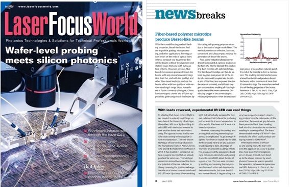 Laser Focus World网站报道链接为:https://www.laserfocusworld.com/articles/print/volume-55/issue-03/newsbreaks/fiber-based-polymer-microtips-produce-bessel-like-beams.html