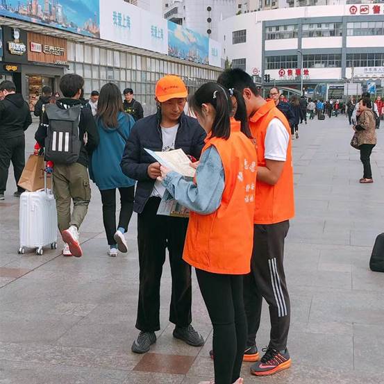 在本次志愿活动中,志愿者们秉承我校“团结、服务、奉献、牺牲”的志愿者精神,响应时代的号召,在志愿实践中提高自身觉悟,充分体现了新时代中国学生群体的动人风采。更富有象征意义的是,每一次这样的火车站志愿导航活动,都是“老志愿者”带新志愿者熟悉活动的注意事项和关键点,当橙黄色的志愿者服被一代代志愿者披上和铭记,一场生生不息的流动的精神传承正在信息学院进行着。