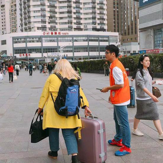 虽然天气转凉,但志愿者们用他们的坚定的身影呵护着宝贵的暖意,尽力为过往有需要的旅客提供帮助。在曾经有经验的“老志愿者”们的带领下,第一次参加火车站志愿导航活动的新志愿者们也愈加熟练。对于诸如如何去北广场、如何搭乘公交地铁、如何购票取票等问题他们驾轻就熟,在不灭的热情之外,保持着极高的服务效率。