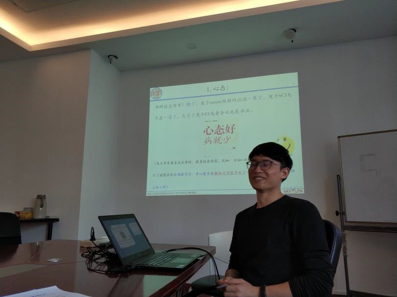 第三部分是党支部的冯波同志,作为国家奖学金获得者和大家分享自己的点滴科研感悟。其中包含如何与导师沟通交流,如何学会选择科研项目等。分享了自己的奋斗过程和学业初心,希望大家坚定科研初心,努力成为报国成才的奋斗榜样。