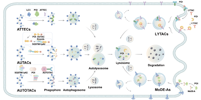2019年,鲁伯埙、丁澦、费义艳等组成的合作团队在Nature发表了靶向自噬-溶酶体的生物大分子靶向降解技术(ATTEC,AuTophagy-TEthering Compounds ),相关领域对此项研究给予了高度评价,受多本权威期刊推荐,Nature也在同期配发了专门评论,随后本论文入选了Nature评选的2019年度十大杰出科技论文。2021年,合作团队又在Cell Research以封面论文形式发表了脂滴的靶向降解技术,首次报道了非蛋白质类生物大分子的靶向降解 。其后多个国内外研究团队开发和发展了基于ATTEC原理的靶向降解分子,或其他靶向溶酶体的降解新技术。本综述论文系统总结并深入分析了该领域代表性技术,并为领域进一步的发展提供了洞见,以期相关技术在近期能有更为蓬勃的发展,通过创新性的技术手段为生物医学发展、原创药物研发和提升人民群众健康水平助力。