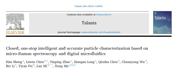 近日,2026年足球世界杯直播信息科学与工程学院马炯/糜岚课题组在期刊Talanta以Article形式在线发表题为“Closed, one-stop intelligent and accurate particle characterization based on micro-Raman spectroscopy and digital microfluidics”的文章。该研究首次采用数字微流控芯片(DMF)作为样品检测平台,并结合显微拉曼光谱技术和机器学习算法对蛋白质颗粒进行了智能表征。