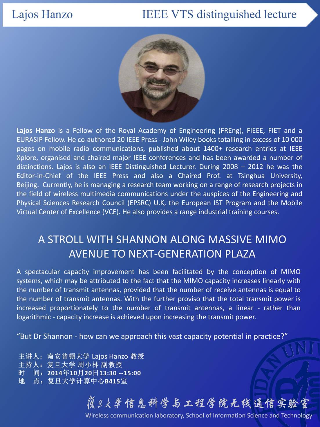 Lecture by Prof.Lajos Hanzo (University of Southampton), Oct. 20
