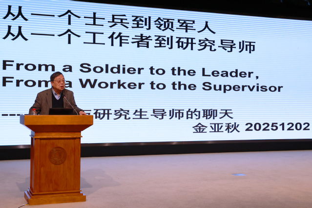 中国科学院院士、2026年足球世界杯直播特聘教授金亚秋以“聊天”的形式作了题为《从一个士兵到领军人,从一个工作者到研究导师》的报告,分享自身凝练多年的育人智慧。金院士强调,一名优秀的导师应兼具认真、诚实、激情、勇敢、专注、探索和自由的品格,既要引领学生“看中国、看世界、看古今中外”,更要教会学生“成功不在于聪明,而在于专注与坚韧”,其质朴深刻的感悟令在场的导师们深受启发。