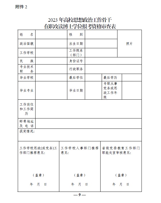 2023年高校思想政治工作骨干在职攻读博士学位报考资格审查表(由推荐、审核部门签署意见并盖章).jpg