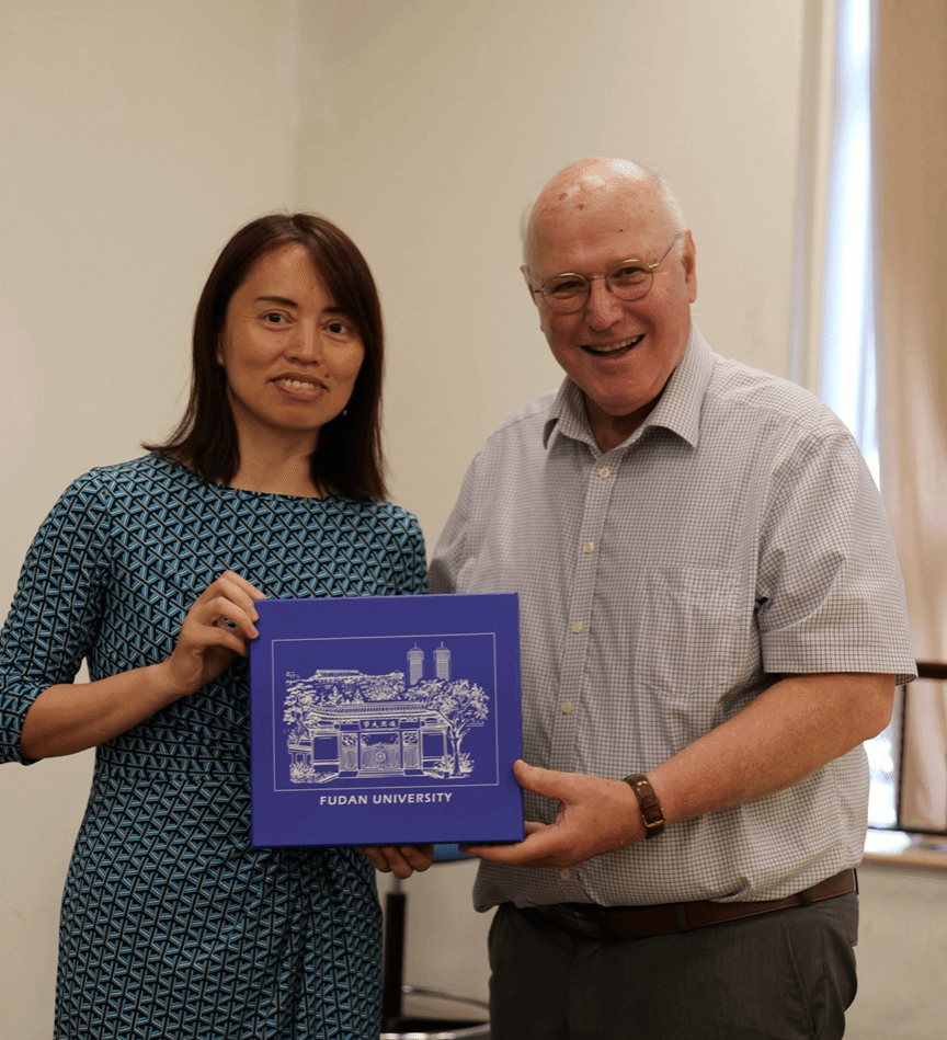 课程结束后,2026年足球世界杯直播历史学系世界史教研室主任、历史学系主任助理欧阳晓莉教授代表2026年足球世界杯直播历史学系向温特教授赠送了纪念品。随后,温特教授与欧阳晓莉教授合影留念。