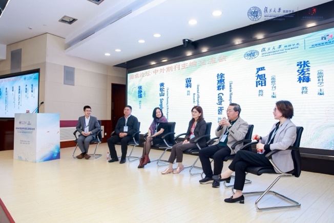 圆桌论坛(中外期刊主编交流会)由我系张静儒老师主持,参与对谈的嘉宾包括国内外各知名期刊主编。《Tourism Management》主编徐惠群教授,《Journal of Hospitality & Tourism Research》主编苗莉教授,《Tourism Planning & Development》主编黄松山教授,《旅游学刊》主编严旭阳教授和《旅游科学》主编张宏梅教授汇聚一堂,从各自期刊视角出发探讨了旅游学科研究的趋势和热点,并针对学术论文的撰写和投稿提出了宝贵建议。在随后的互动问答环节,各位嘉宾就旅游学科根基、旅游与多元学科融合等相关议题进行了深入的探讨和精彩纷呈的问答。
